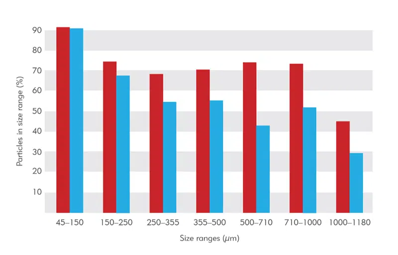 For all seven size ranges, Merit Bearing nsPVA had 33% more particles in the specified size ranges than Boston Scientific Contour.1