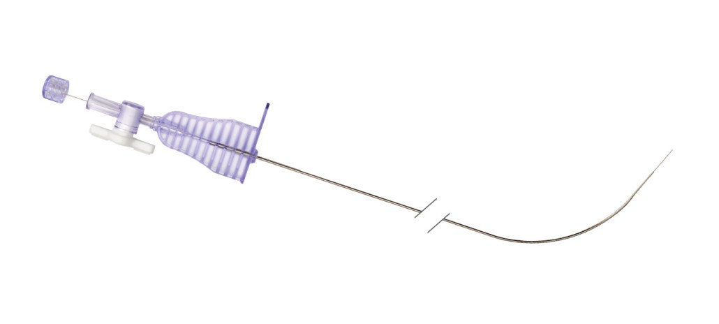 Provides guidance with needle advancement through dilator to reduce the risk of skiving