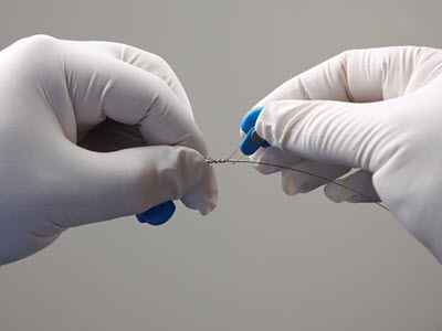 The Liberator and One-Tie® used together provide two traction points along the length of the lead. The first step is visualizing the location of distal locking with the Liberator and the One-Tie and proximal compression establishing the rail between the two points. An established rail and use of the One-Tie in conjunction with the Liberator provides improved central support of extraction sheaths during challenging lead extraction procedures.1