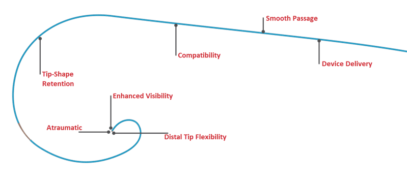 Radiopaque coil at the distal tip to enhance visibility under fluoroscopy.