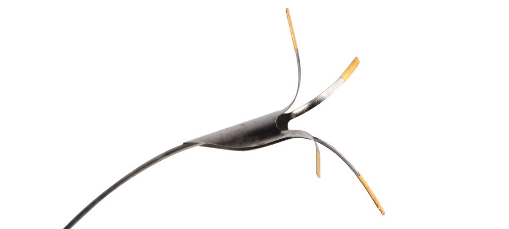 The 4 cm distal end is ground down to 0.014 inches and heat-treated to allow more flexibility to prevent straightening of the guiding catheter curve, while retaining push/pull characteristics.