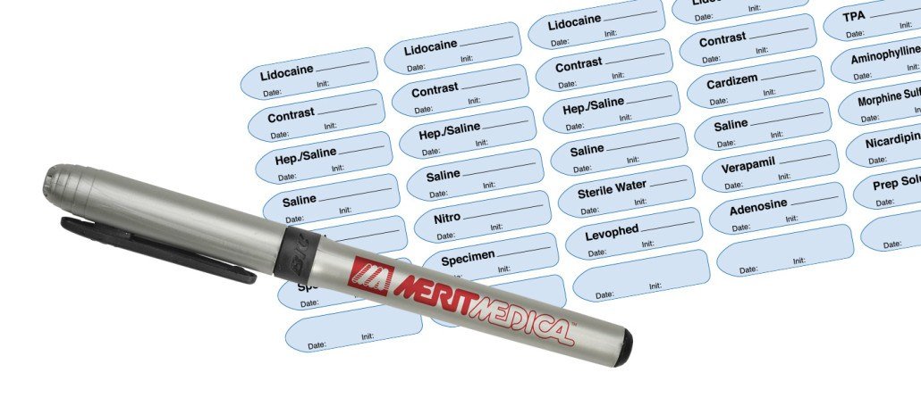 Merit Medical’s PAL™ – Pen and Labels – were designed to streamline and help make labeling medication easier. PAL labels are designed to stick even when wet and can be customized with a variety of color choices for safety and convenience. The PAL pen is sterile, has a fine point, and is smear resistant.