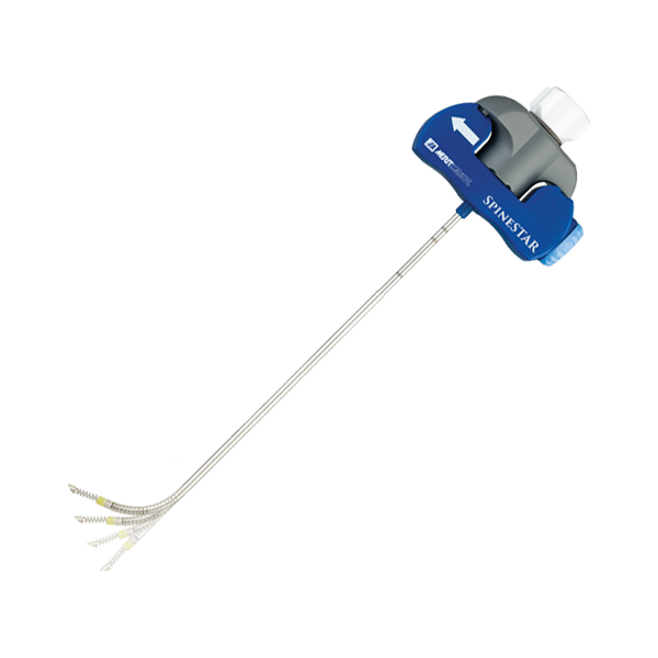 The SpineSTAR® Ablation Instrument is designed for use in the complex anatomy of the spine. This small steerable device is inserted into the vertebral body to deliver targeted RF energy to the tumor. RF energy heats and destroys metastatic tumor cells, while temperature sensors within the SpineSTAR® continuously monitors the ablation zone progress to minimize patient risk.